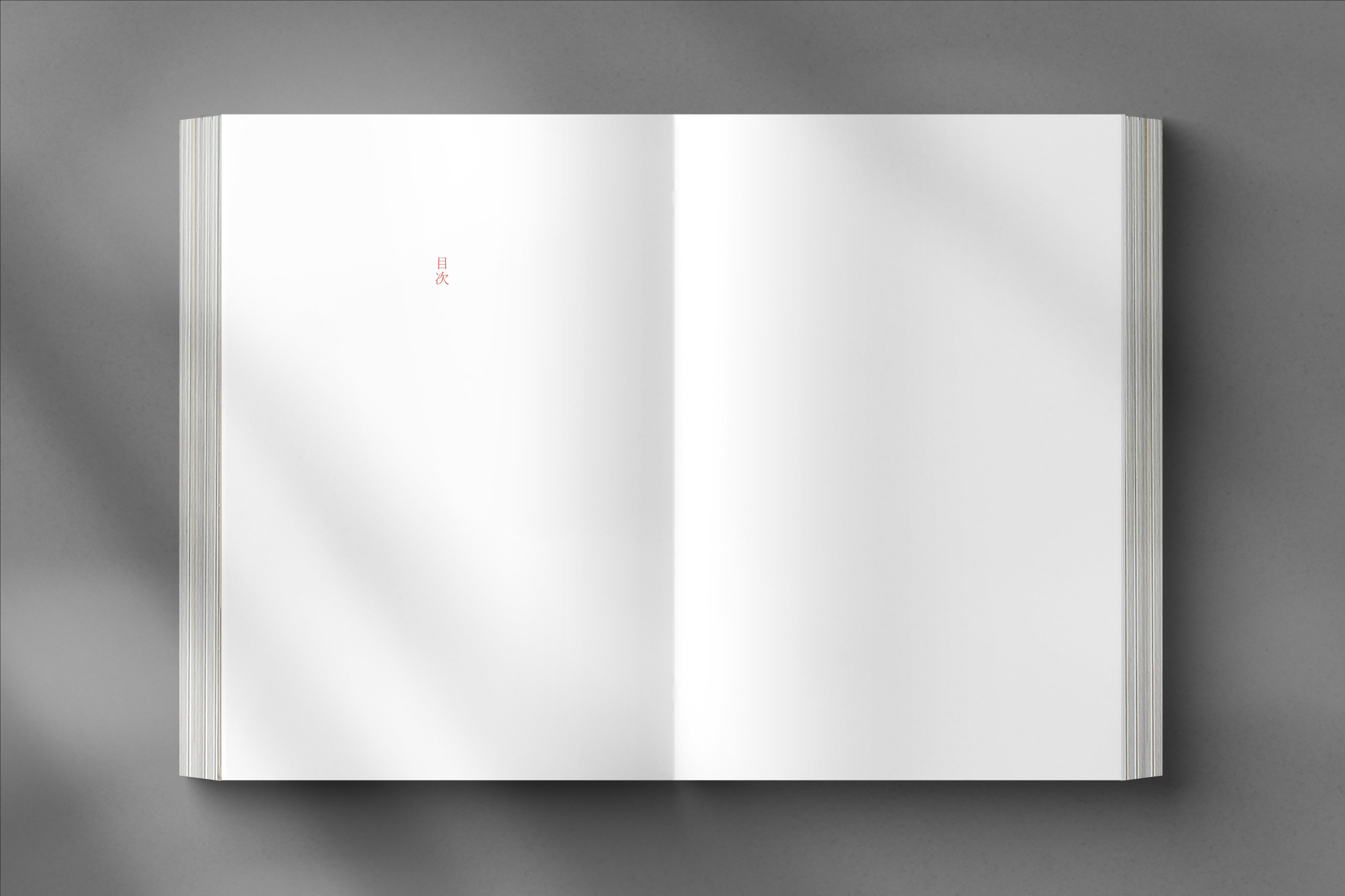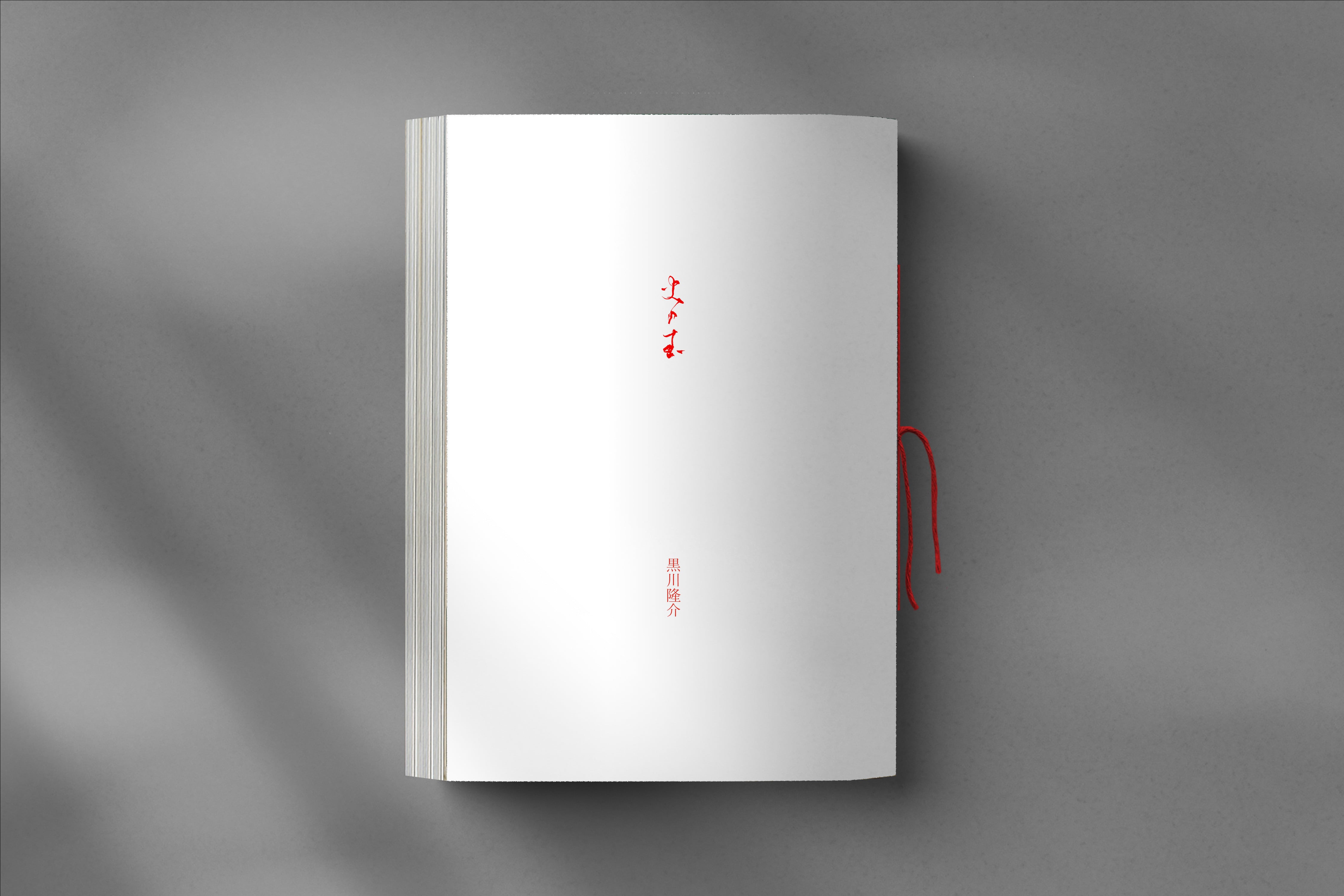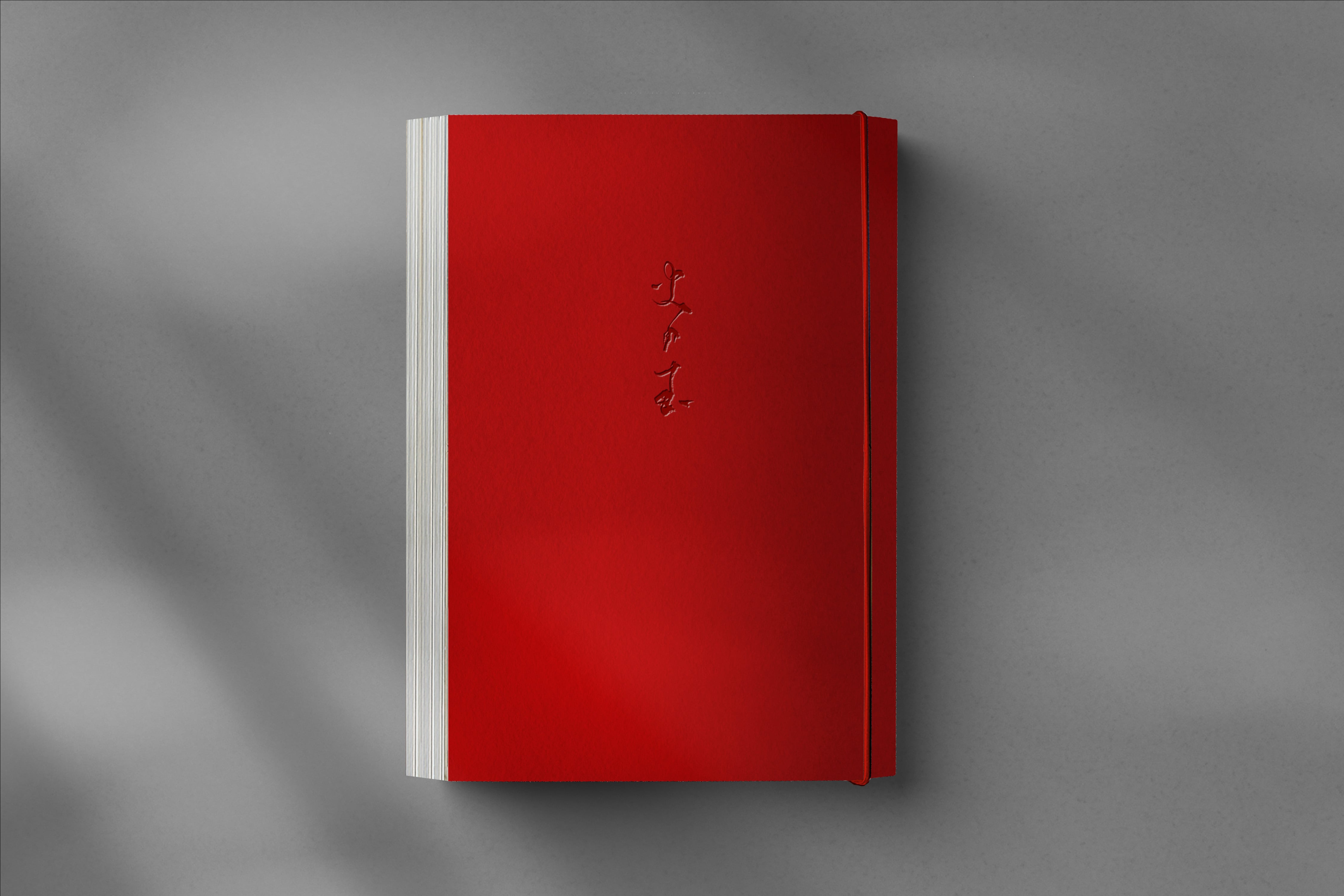 無垢な赤い表紙には株式会社竹尾の「OK ACカード」を使用。書家 田中象雨書き下ろしの題字を赤のメタリックで箔押しし、一見赤い色面だけにもみえる表紙デザインは火というぼやけながらもそこにある強さと儚さを表現。